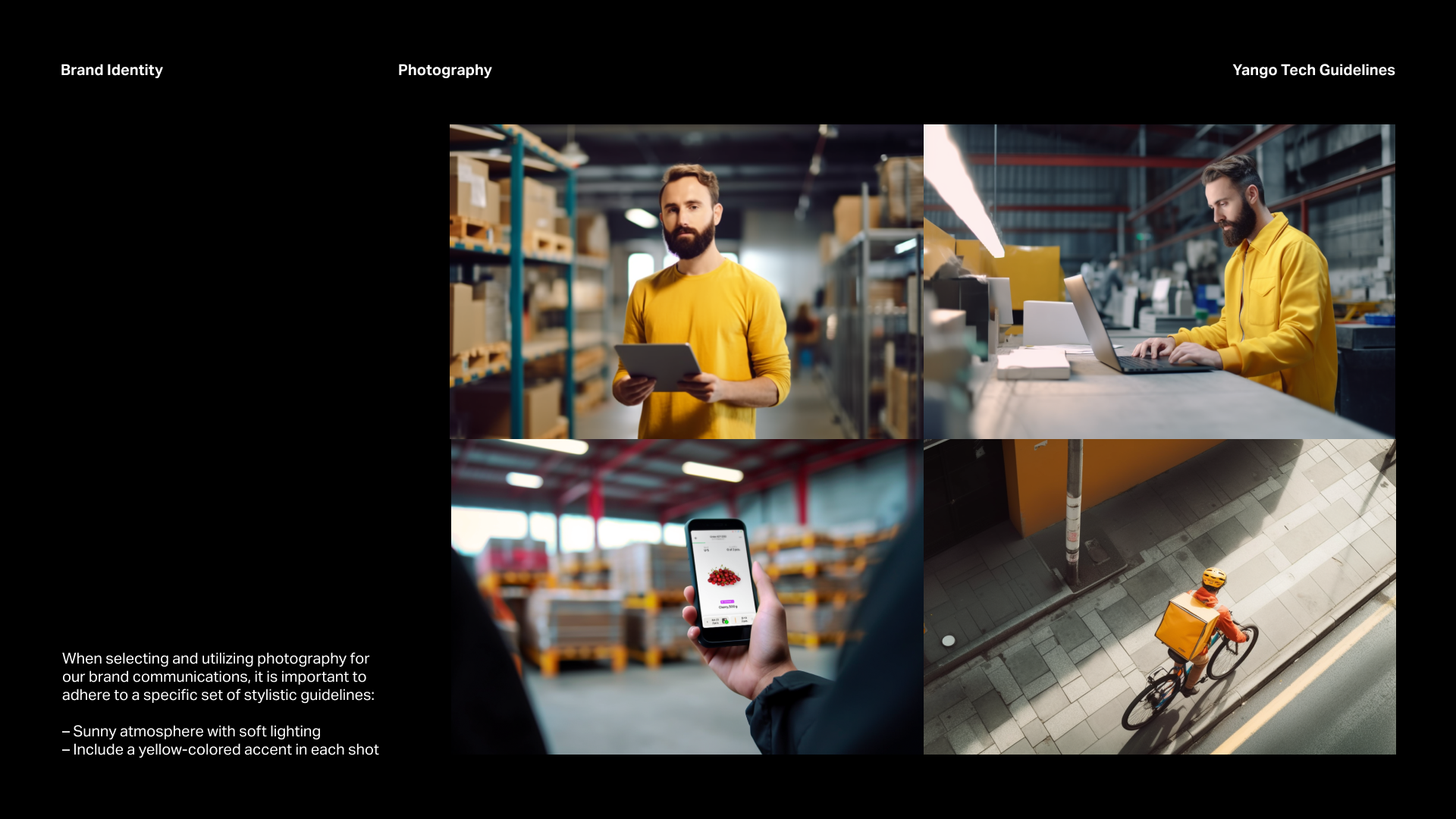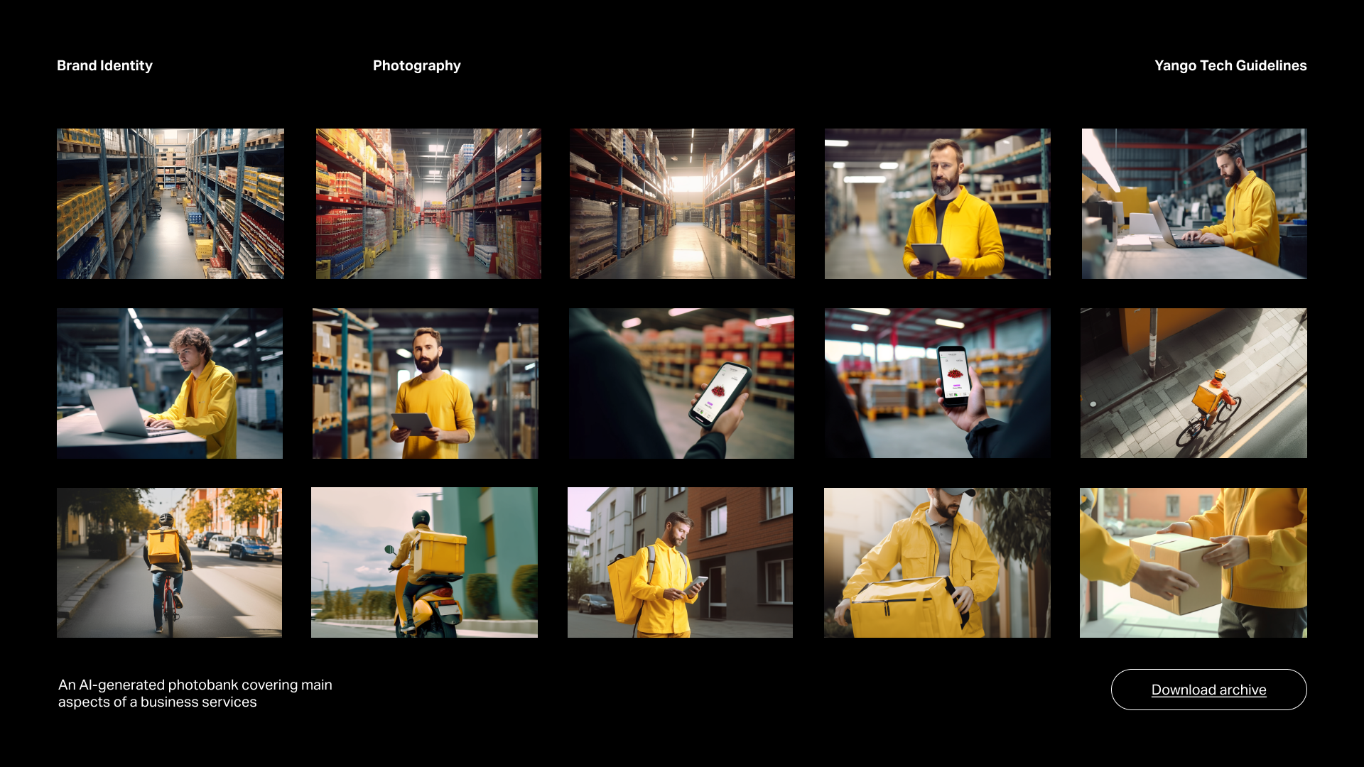 Alongside the text prompt, I supplied reference shots from existing materials to lock in exact poses or actions. Stock photos work too—buy an image with the right motion and feed it in so Midjourney can recreate it in the Yango Tech look.