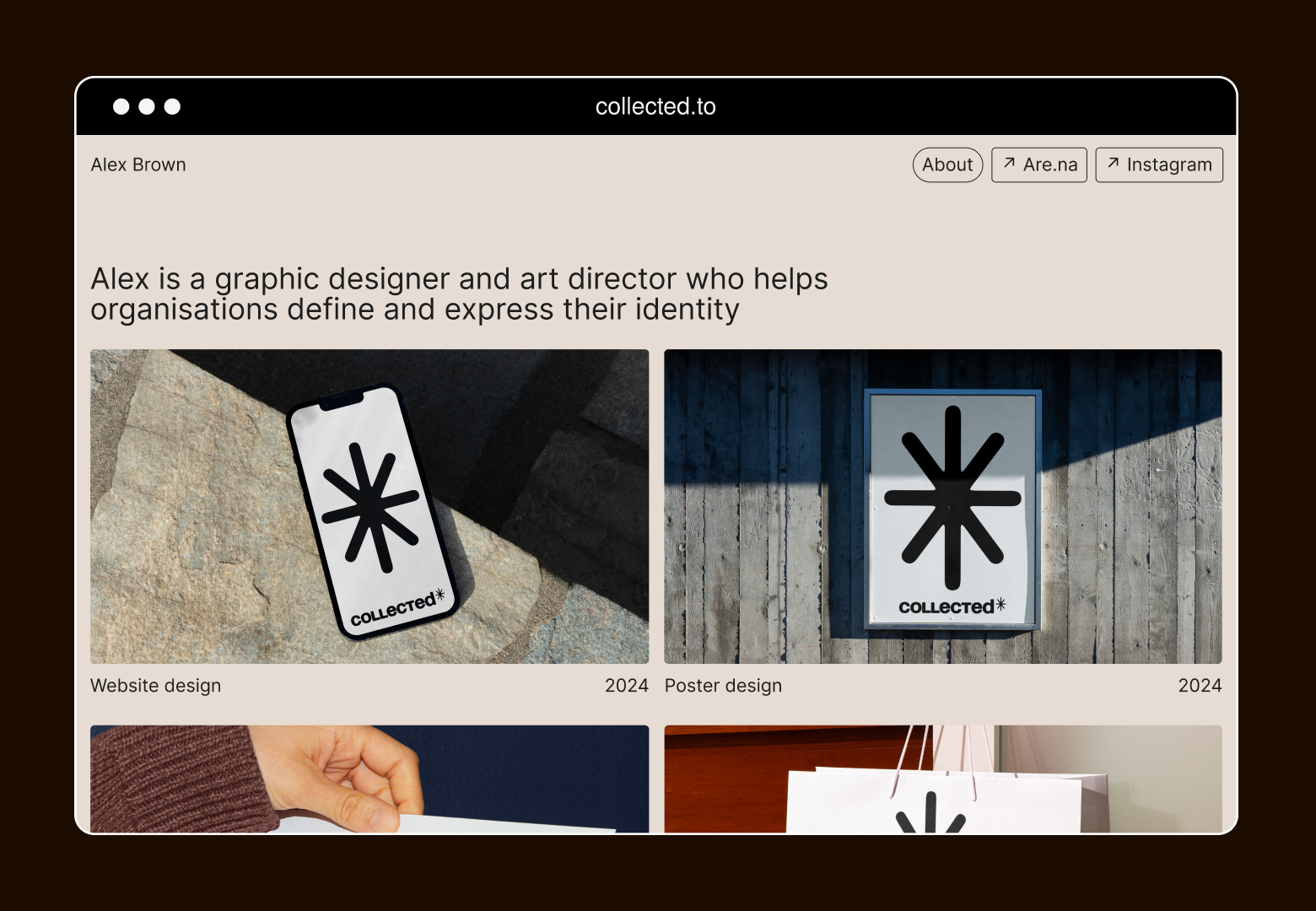 Collected became my first open-source project, it's a free, customizable portfolio site designed to make launching and showcasing work easy, especially early on.